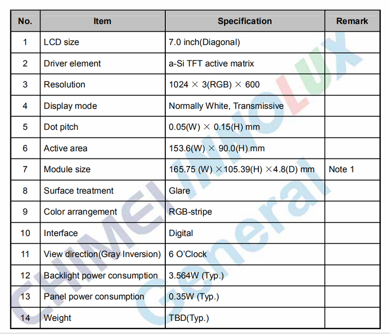 品名: 7寸群創1024*600準工業液晶屏